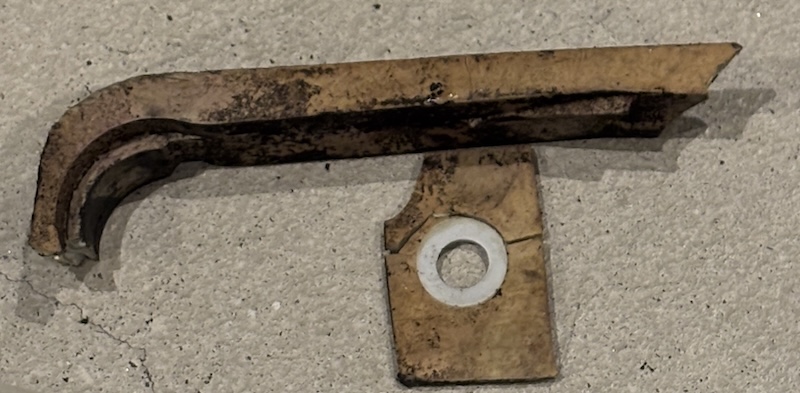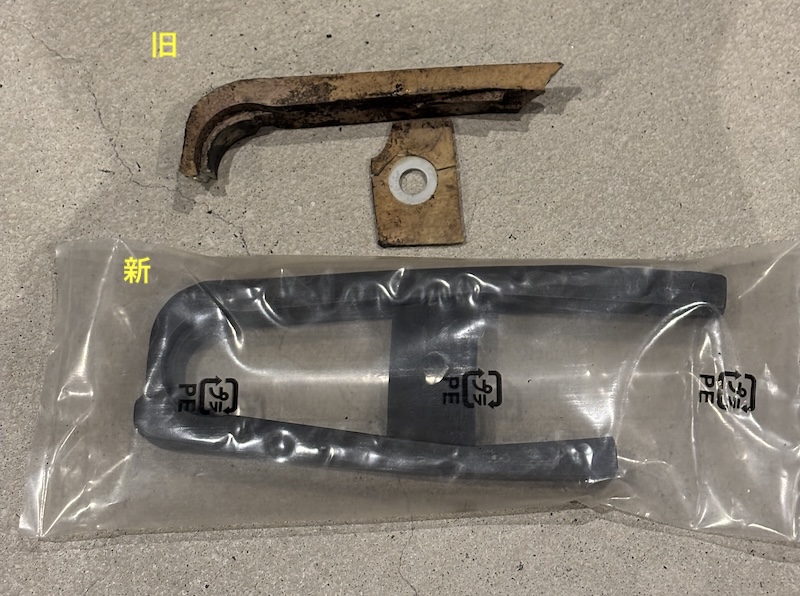 外したチェーンスライダーは経年劣化でボロボロです。下側はどこかに落としてしまいました。