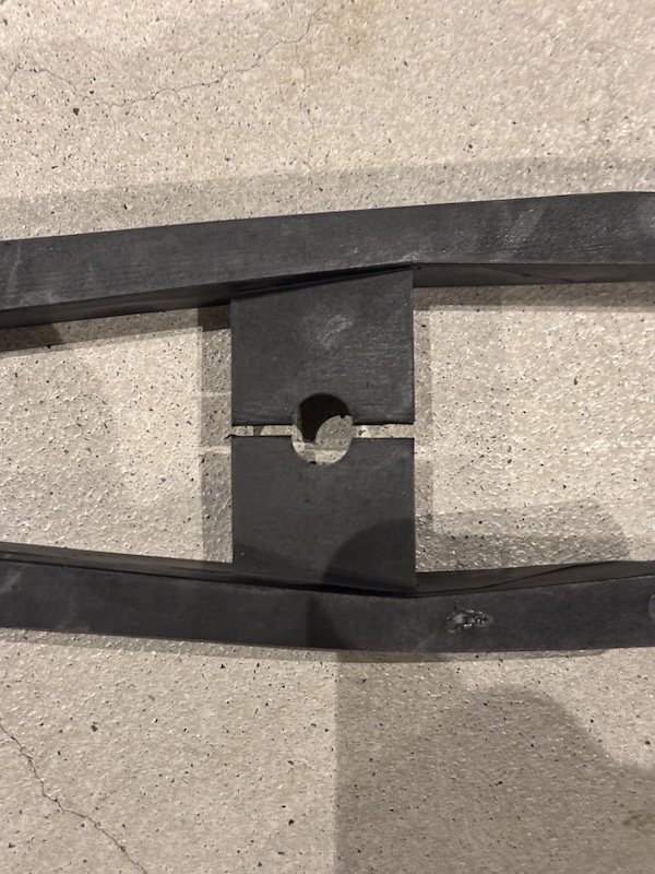 スイングアームを外さずに取り付けるため、固定用ボルト穴の中央部分にカッター等で切れ込みを入れて上下に開くようにします。スイングアームを跨いで取り付けるため必須となります。