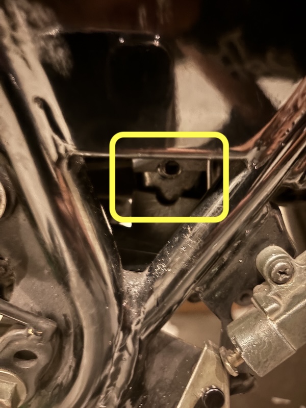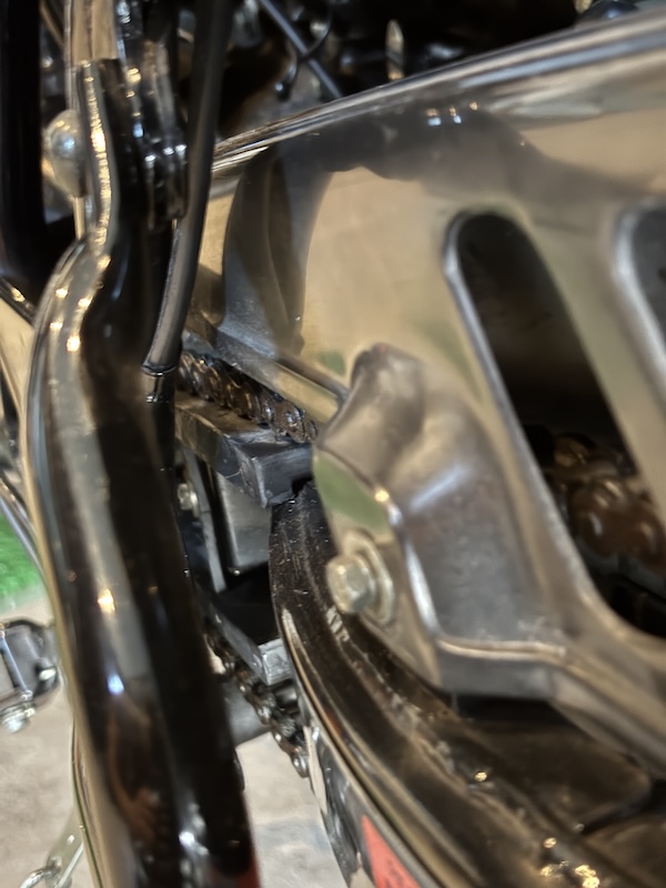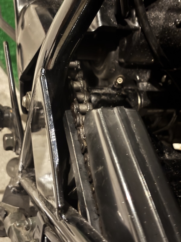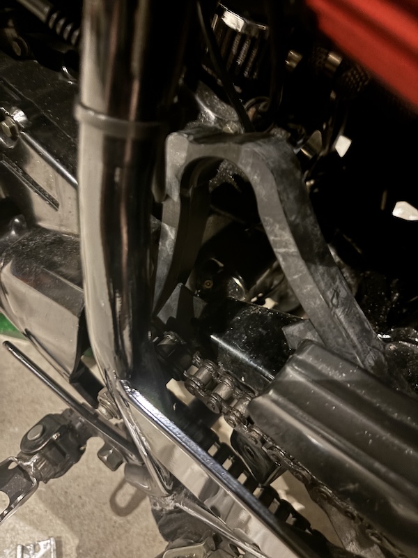 そんな中、先日走行中に段差を越えたあと『ガタン』と音がしたので確認してみるとチェーンスライダーの下半分がなくなっていた。上の部分が残っていたのでスイングアームが傷つかずにラッキーであった。
